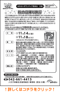 いずれかの日をお選びください。 - 集 合 最初の集合場所 北野駅を7時30分頃に出発。八王子市内の集合