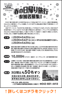 【3】2026年5月29日(金) いずれかの日をお選びください。 - 集 合 最初の集合場所「北野駅」を7時30分頃に出発。八王子市内の